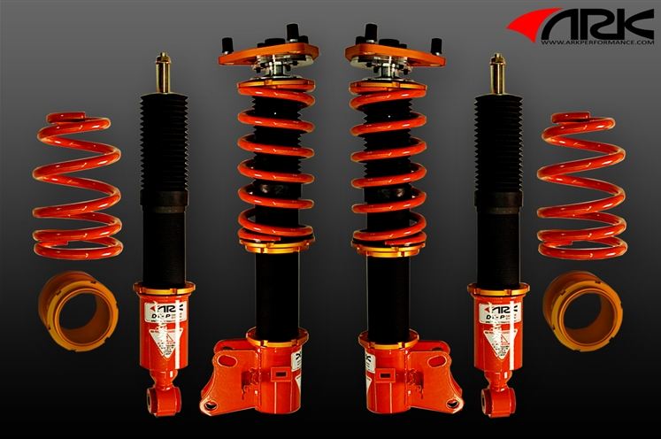 The ARK system uses a Monotube design in which the oil and gas are separated within the cylinder. When compared to twin tube designs the Monotube dissipates heat better, allows finer dampening adjustments, and requires more expensive design process. Aeration and cavatation are a lot less common in a Monotube design, which results in a better ride. The ARK DT-P Coilover system has been designed with professional road racing in mind offering extremely high value and performance.