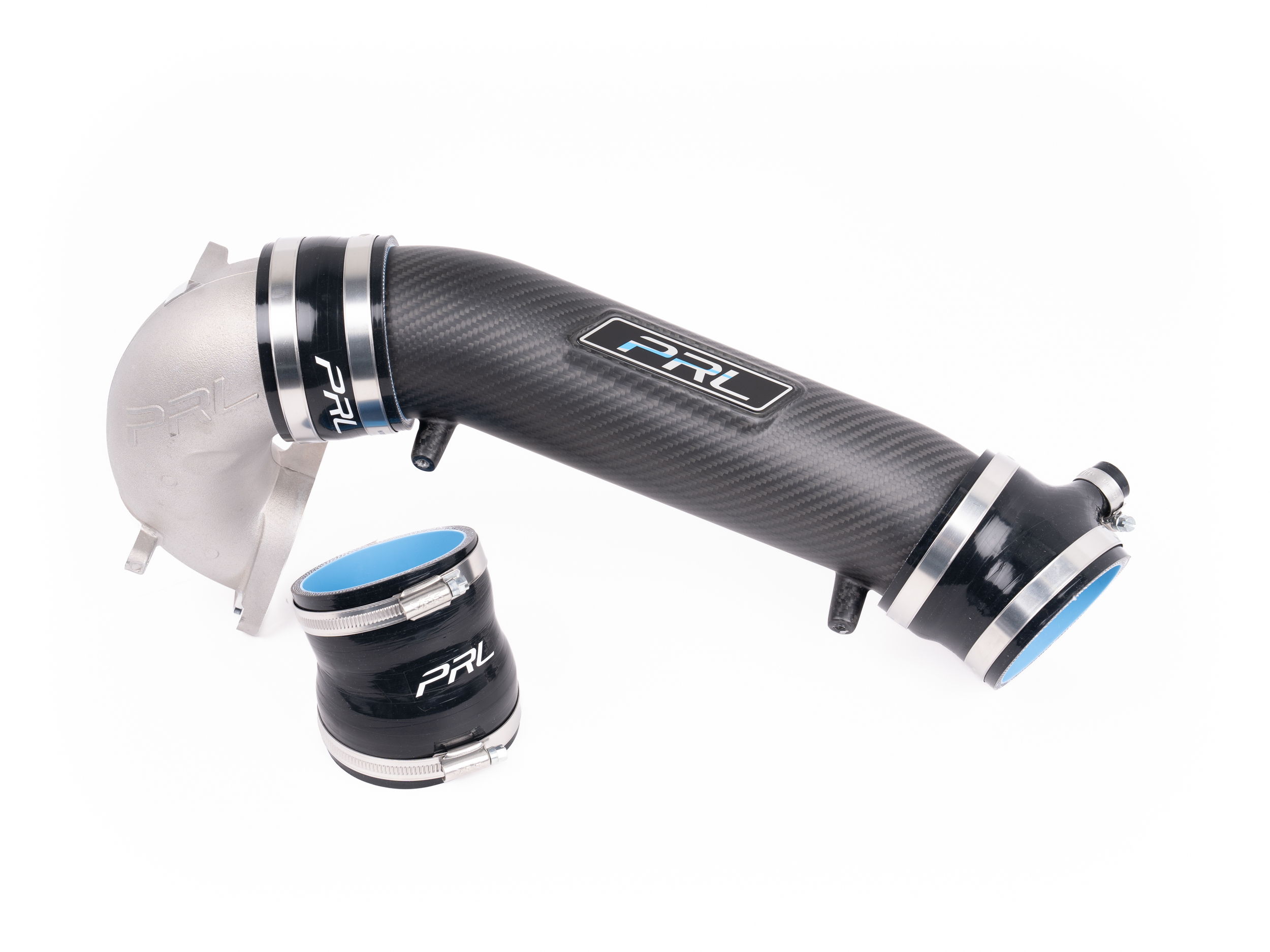 By eliminating the stock inlet's limitations, our kit increases airflow by 50%, allowing the turbocharger to breathe more efficiently. This enhancement leads to improved low-end power and faster turbo spool, providing a more responsive and exhilarating drive. The cast aluminum elbow ensures a smooth air transition, while the carbon fiber inlet tube, available in a sleek Matte finish, offers both strength and a customized look. Additionally, the stepped silicone design and machined surfaces at bolt locations guarantee a consistent and secure fit, making this upgrade a comprehensive solution for performance enthusiasts. Our design matches the rest of your engine bay, and makes a great compliment to the PRL Matte Carbon Fiber High-Volume Intake System.